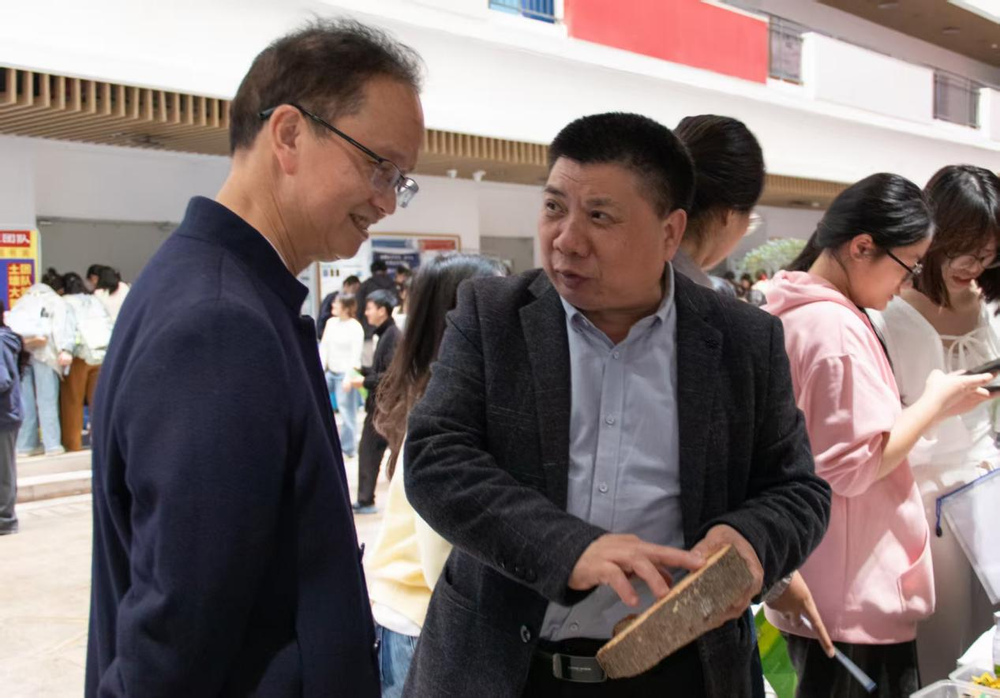 活动现场,林伟、陈松林深入各科研团队展位,与青年师生亲切交流。他们认真听取团队在科研成果、团队建设、人才培养等方面的介绍,详细了解本科生参与科研的情况,并对学生们的创新热情和专业素养给予肯定。陈松林结合自身丰富的教学与科研经验,就学术成长、科研路径选择等问题为青年师生们提供了宝贵建议。